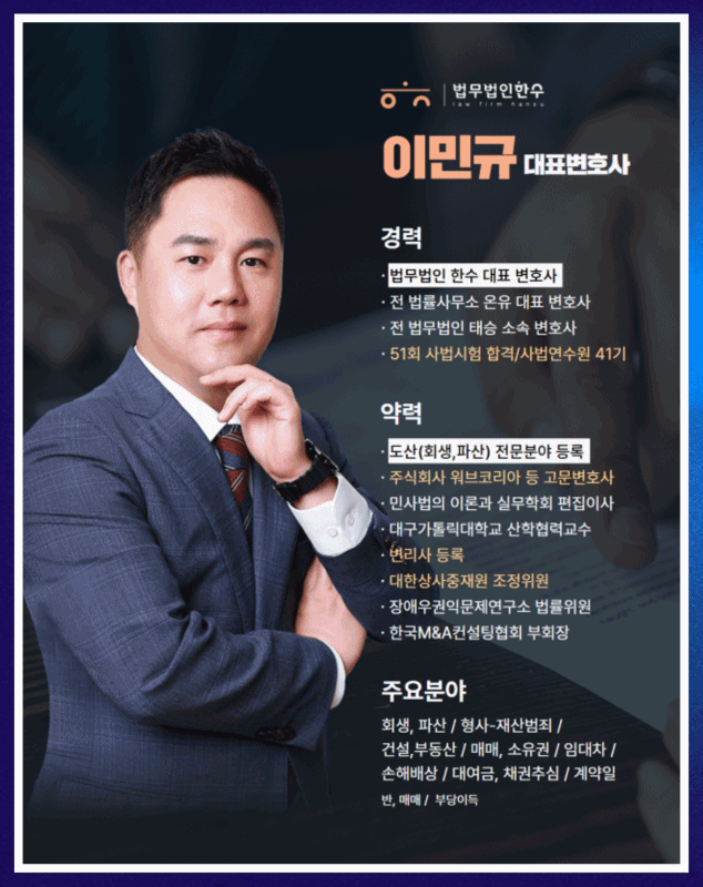 여러분에게 늘 솔직한 조언을 약속하는 건설법인회생 전문 변호사 이민규입니다.